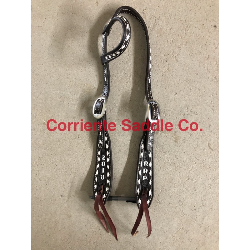 One Eared Headstall WithBeautiful Design and Nice BucklesDouble Flower ToolingWhite Buckstitch BorderChoose A Headstallto Match Your SaddleLettering is included