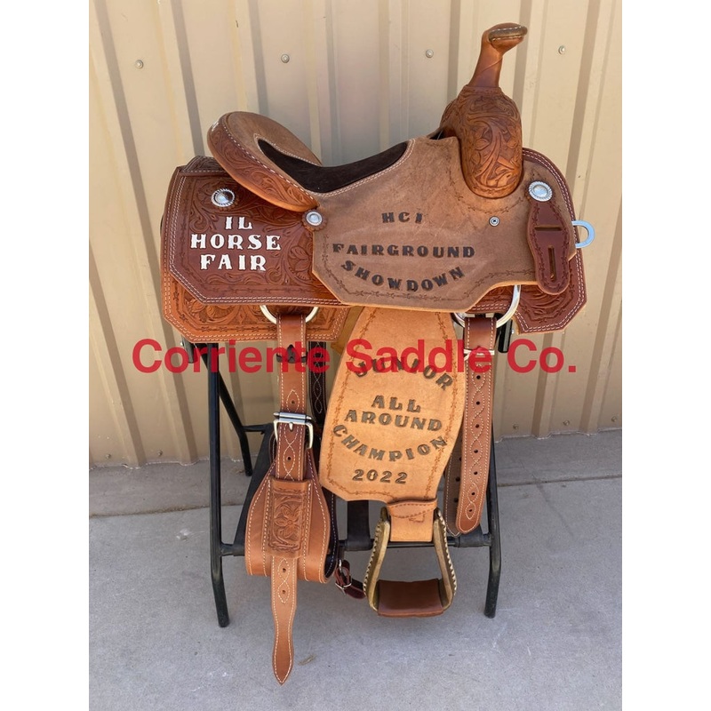Inlaid Black SeatRawhide StirrupsTrophy Lettering $50Lettering Painted Black