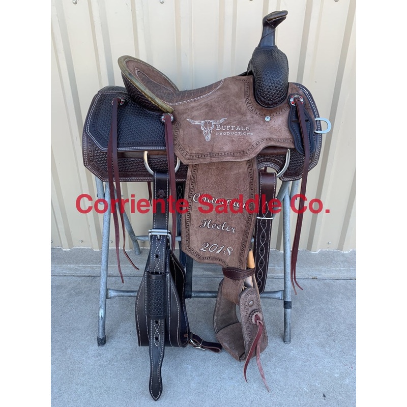 TO ORDER PLEASE CALL US 915-525-9009SADDLE SPECIFICATIONSRoperReal Wool Sheepskin LiningAvailable on All Saddle-$150**CHOCOLATE LEATHER**Half Breed RoughoutBasketTooling Running W Trim All Around Saddle45 Degree SkirtingFront Dee CutoutsStraight Up CantleI