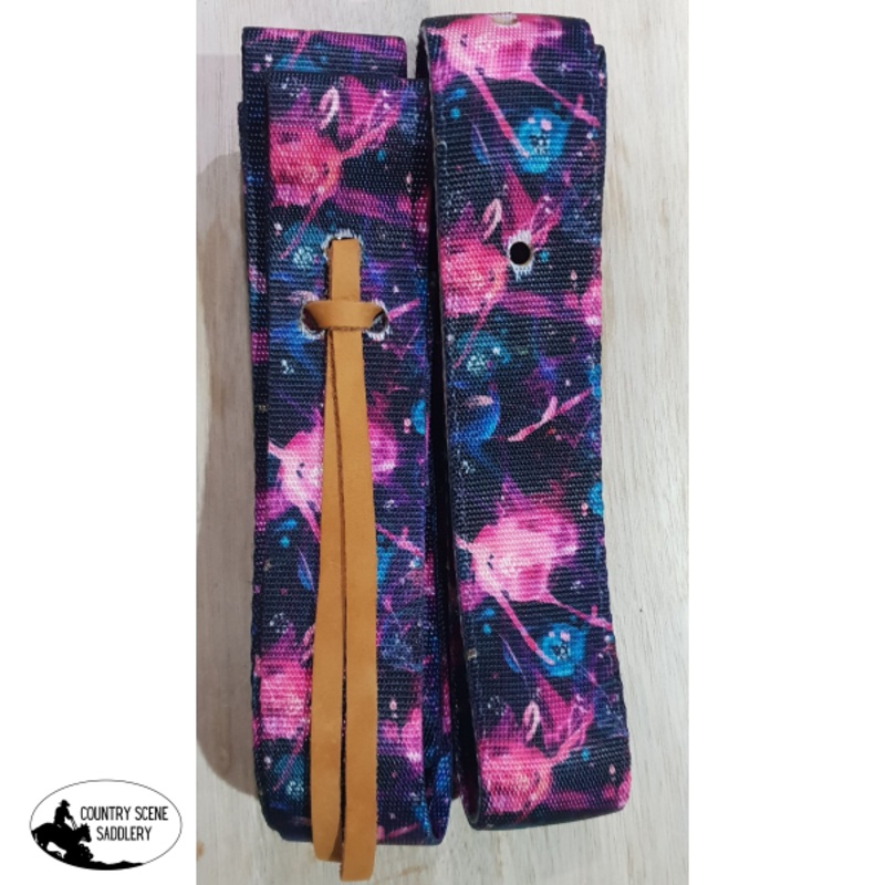 Excellent quality nylon latigo, vibrant colours.Billet Strap: 38" tip to tip.Latigos: 70 inches long, and width 1 3/4" wide, 4mm thick (approx).If product is set to'preorder'it will need to be made.