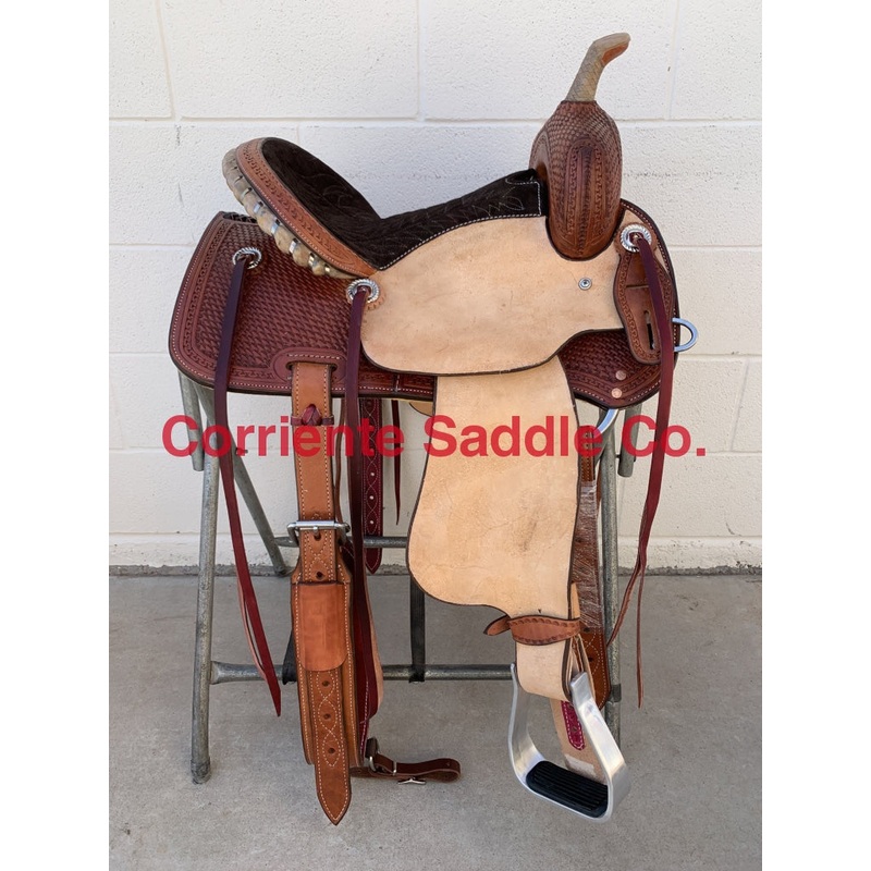 TO ORDER PLEASE CALL US 915-525-9009SADDLE SPECIFICATIONSReal Wool Sheepskin LiningAvailable on All Saddle-$150TrailSaddleMade on Barrel TreeHalf Breed RoughoutBasketTooling Running W Trim on Tooled Part OnlyRawhide Braided Horn6 StringsSilver Lace on Cant