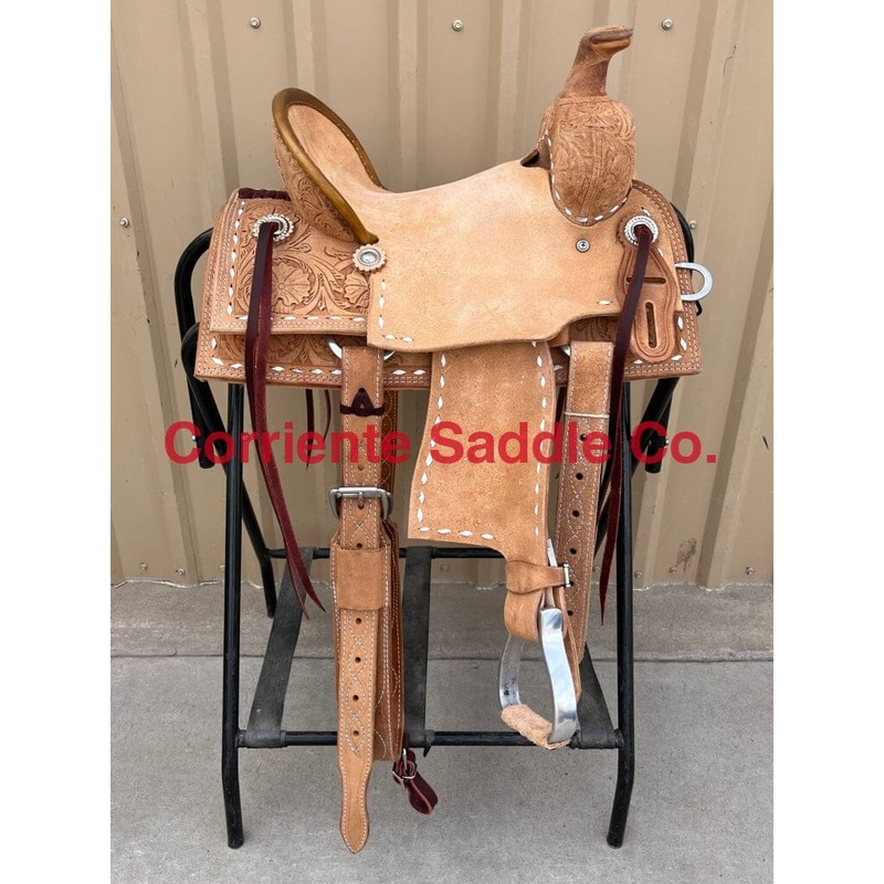 TO ORDER PLEASE CALL US 915-525-9009SADDLE SPECIFICATIONSReal Wool Sheepskin LiningAvailable -$12012″ InchYouth Buckaroo Association Ranch Saddle**WHITE BUCKSTITCH BORDER**Full RoughoutTooling on Roughout Swells, Cantle and Back Skirting
