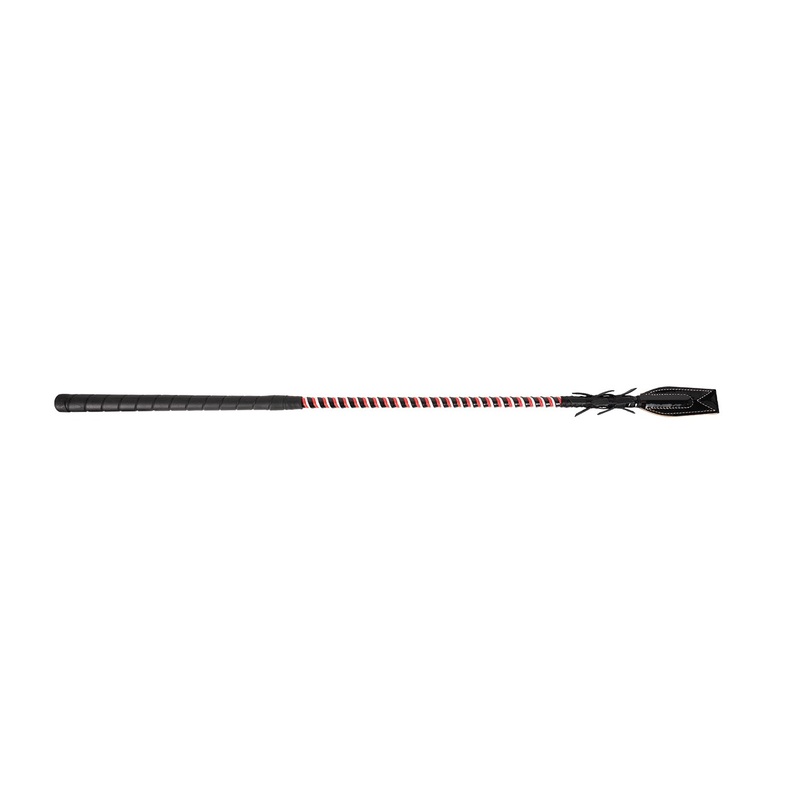 The Racing Bat has a golf style grip and plastic wrapped fiberglass shaft with a thick leather curved flapper & feathers. 30"/76 cm L.Golf style gripPlastic wrapped fiberglass shaftThick leather curved flapper and feathers30"/76 cm L