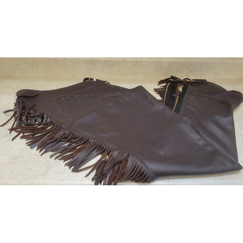 Be the first to review “Custom Wire Horse Brown Smooth Leather Chaps with Fringe- Size XL Long”