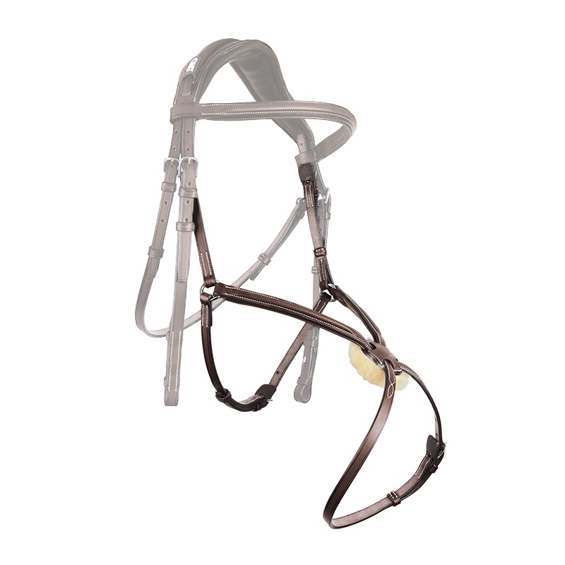 The Mexican noseband allows two-point closure at the jaw and chin. It is calfskin-lined for optimum comfort for the horse.