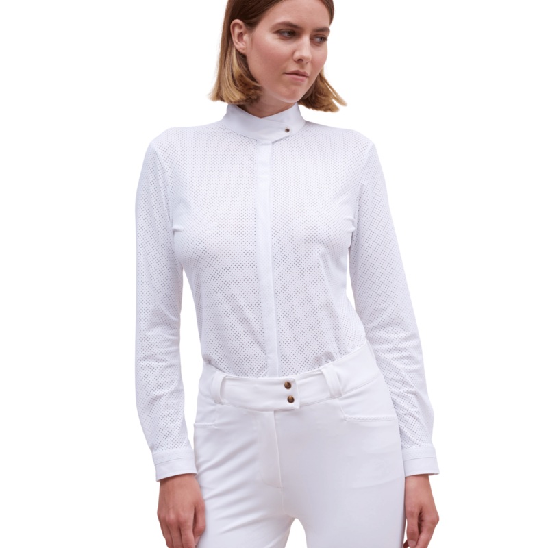 Complete your competition wardrobe with the Long-Sleeved Microperforated Competition Shirt, offering a contemporary and elegant look with advanced technical features.