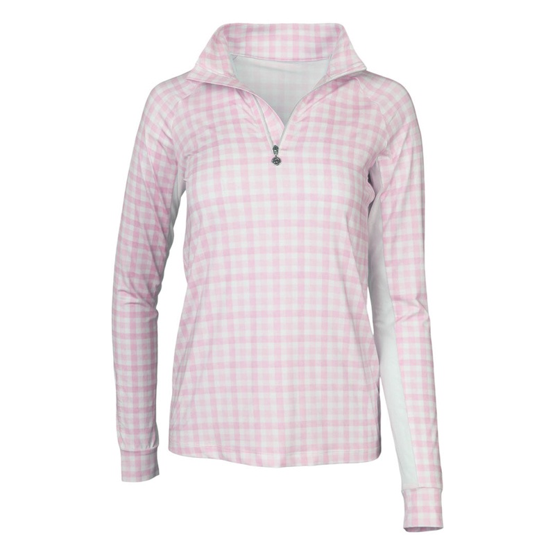 Meet the Gingham Collectionclassic soft pastels, perfect for warmer months. A timeless design to complete your preppy equestrian look! You won’t find it anywhere else because all Dapplebay designs are 100% unique and created in house by founder & designer, Leah. This 1/4 Zip top is the perfect light feather weight, ideal in warm temperatures to protect from the sun, or for layering in the colder months. Featuring a longer length for staying tucked in and elegant, minimal branding.