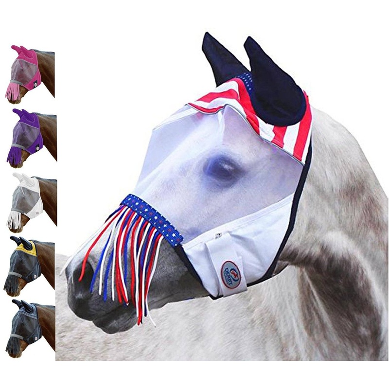 INNOVATIVE FRINGE DESIGN – this fly mask features an innovative nose fringe design that keeps your fly mask open, breathable, and out of the way while your horse eats and drinks while still protecting them from biting pests.