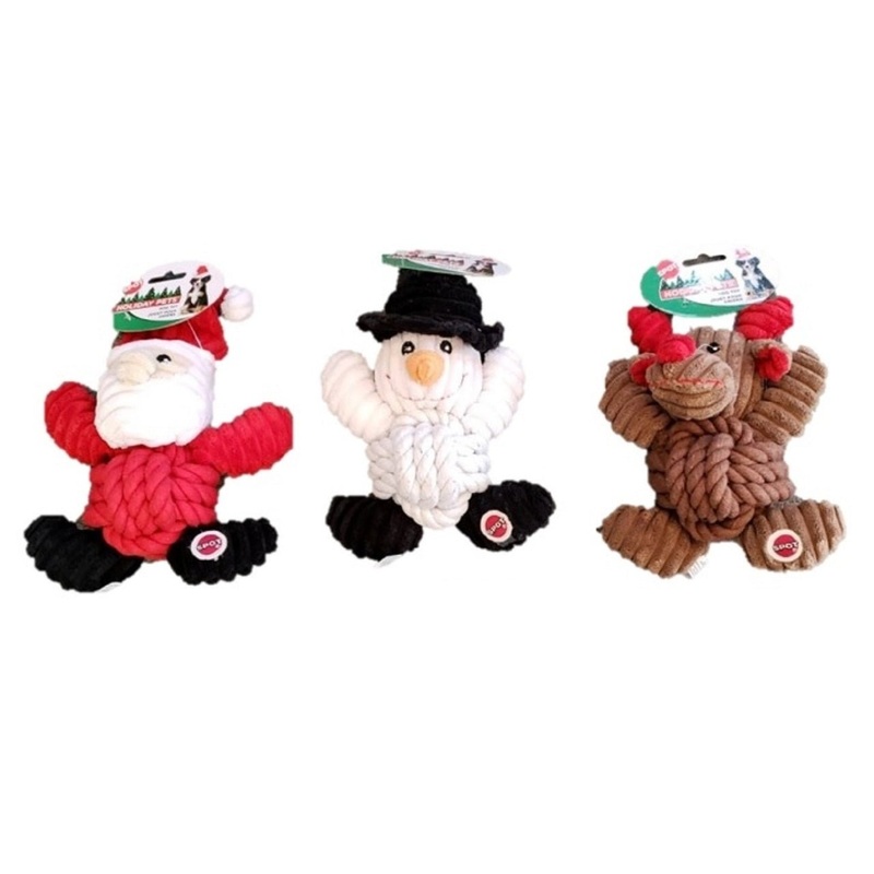 Dog Toy Ethical Pet Holiday Christmas Durable Knot For Nothing Rope Toys 6.5" These festive characters (Santa, Reindeer, and Snowman) have something for every dog. The knotted rope ball belly is perfect for tossing and chewing, but the soft, plush corduroy