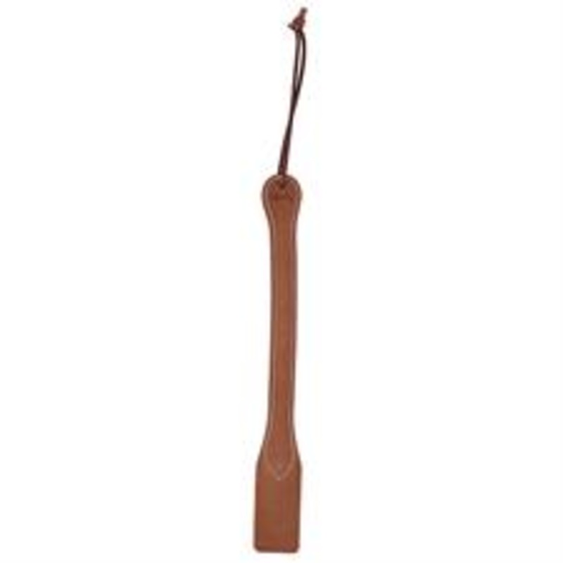 Popular for speed events, this 17" skirting leather bat features a wrist loop to help prevent dropping. Spring steel center helps maintain shape