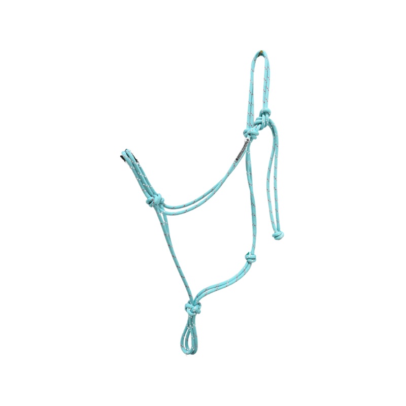 Double Diamond Halter Designed by Buck Brannaman- Turquoise/RedHorse size.Designed and used by Buck Brannaman. They are 6mm (approx. 1/4) diameter with nylon core and a 16 strand nylon cover. The smaller diametergives the horseman greater control and respo