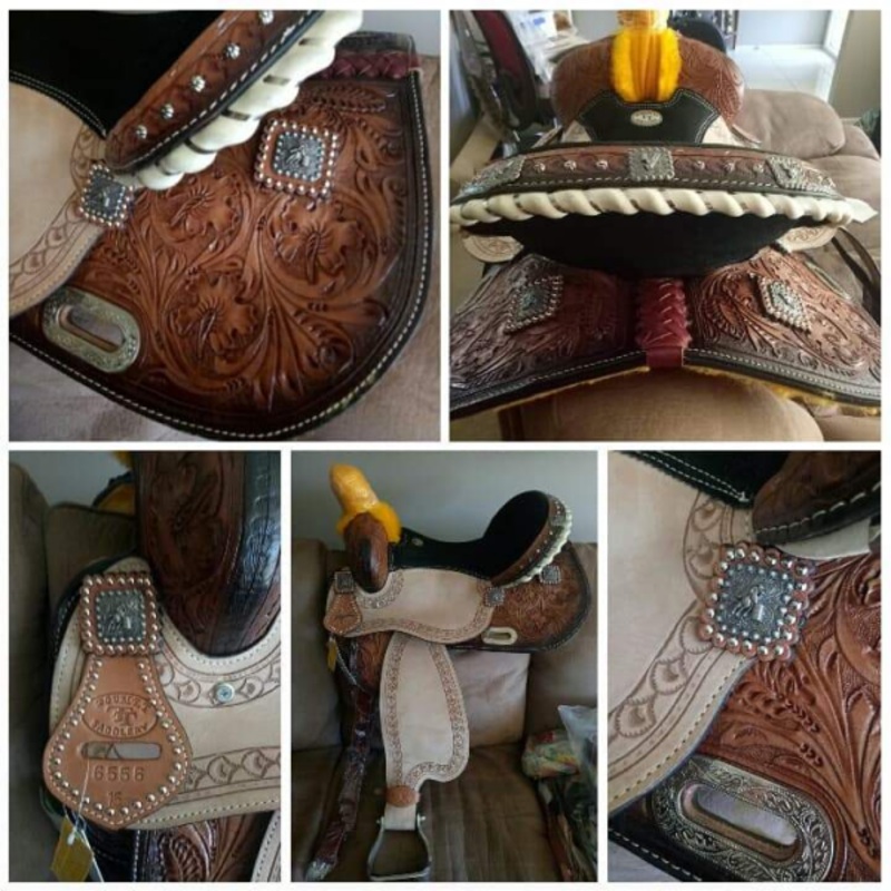 Be the first to review “Double T Barrel Style Saddle with Barrel Racer Conchos.”