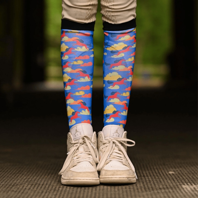 Upgrade your riding sock collection with D&S Socks Pair + A Spare! These premium boot socks offer exceptional comfort and durability. Every pair comes with a bonus “silly” sock for fun! Buy two pairs, and magically get a third pair for free! Enjoy features like soft padding and heel protection for all-day wear. They provide a perfect fit to stay snug in your boots. Say goodbye to sweaty feet with our moisture-wicking design. D&S Socks maintain their shape and color wash after wash.