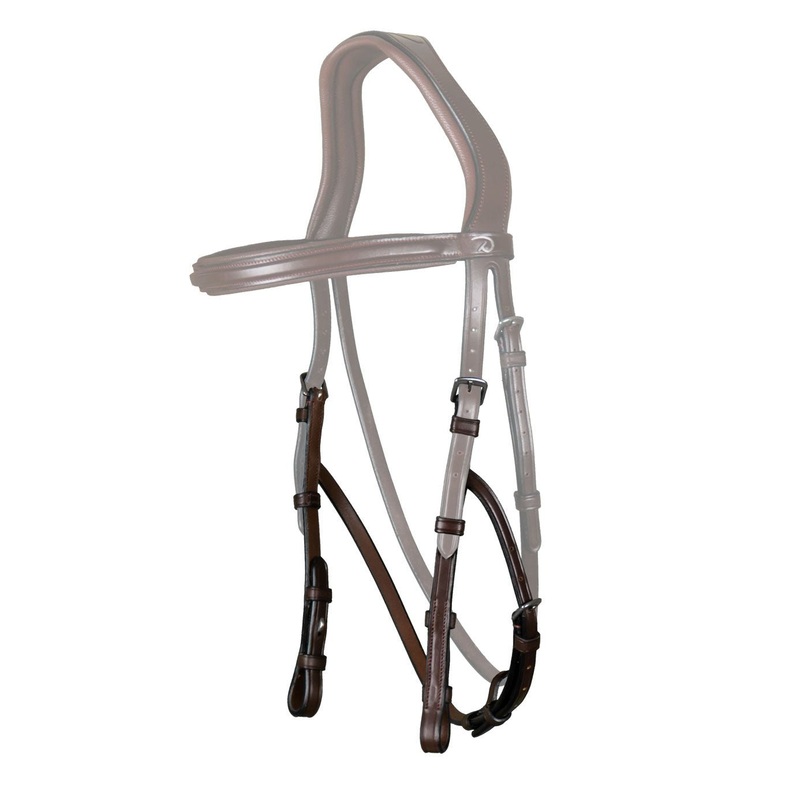 The Dy'on New English Hackamore Cheekpieces have an adjustment strap on the jawbone, which helps to keep them secure and away from the horse's eyes.A single cheekpiece strap attaches to the hackamore on each side.Hackamore not included.The Dy'on New Englis