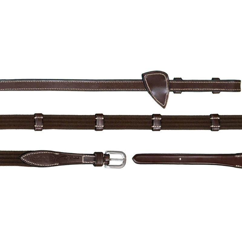 These webbed reins from the Dy’on Working Collection are 5/8in (16mm) wide with cream stitching and leather martingale stops.