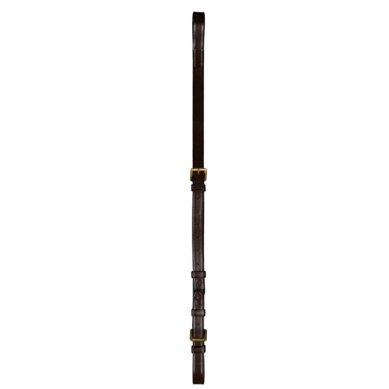 Adjustable standing Martingale Attachment made of Dyon leather.Attaches to a yoke or breastplate by means of a roller buckle.Brass hardware