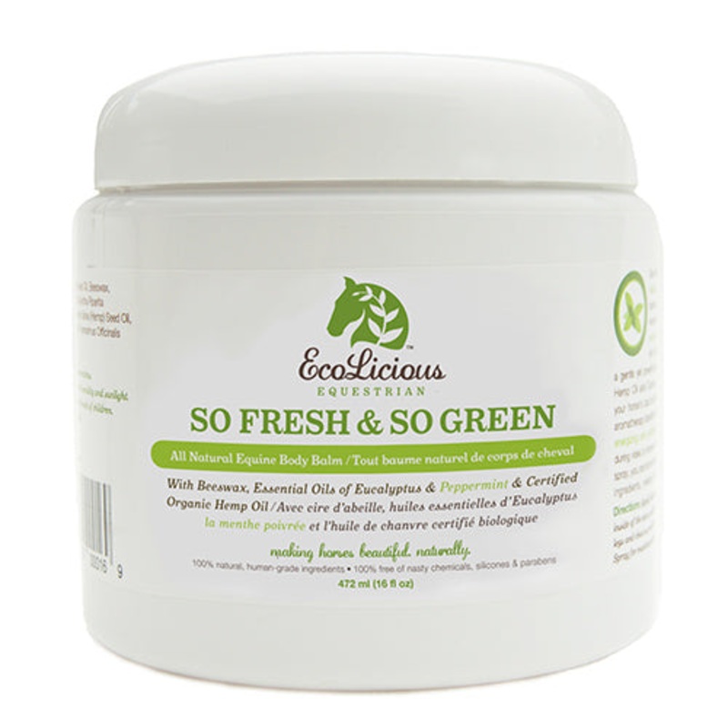 Say hello to the solid version of our wildly popular So Fresh & So Green Equine Body Spray made to get those hard to spray areas. The combo of cooling Peppermint and Eucalyptus makes this balm as refreshing as it gets and will keep your horse cool & minty.