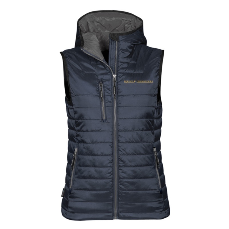 Features:Water-resistantQuilted shell100% polyesterZippered front pocketsAvailable in navyLogo embroidered on the left chestLadies XS-XXL, Men's S-XXL