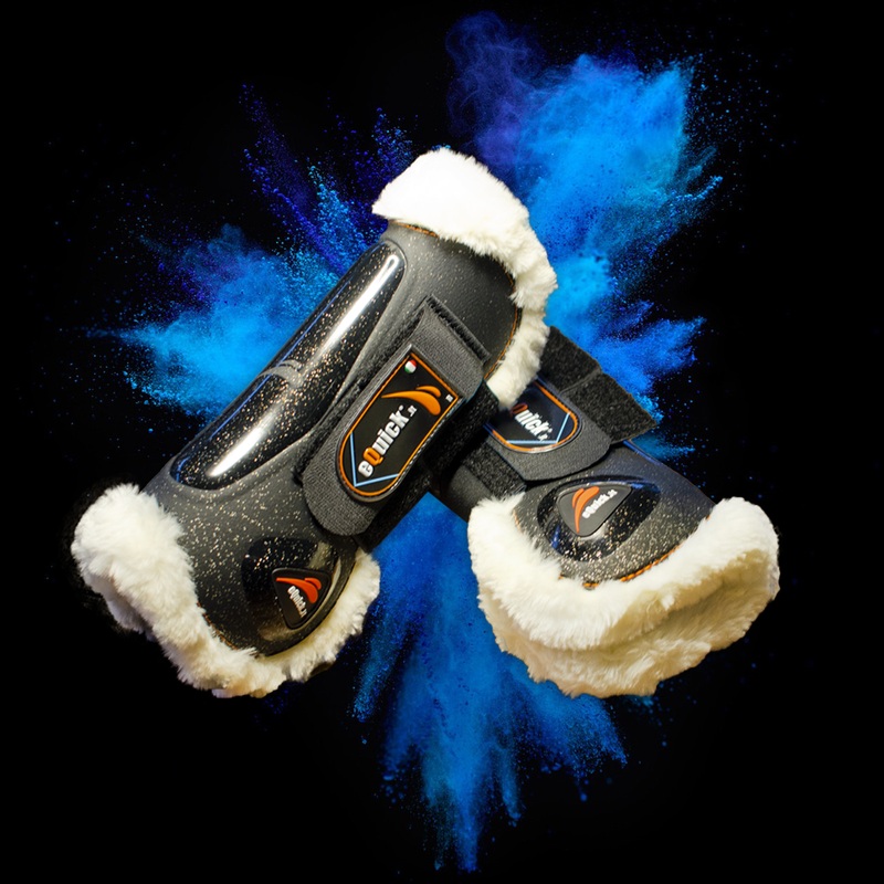 eLight Glitter Fluffy Tendon Boots – perfect boots for sensitive skinned horses, these no kill, 100% animal friendly boots feature super soft artificial sheepskin for quality and comfort. The reinforced TPU shell with exclusive treatment gives the boots a great appearance and at the same time a high level of protection. Equipped with two elastic straps and double Velcro, you can adjust the fit of the boots easily to fit each horses individual leg size. Ideal for daily use, the eLight collection offers an affordable, high quality tendon boot.