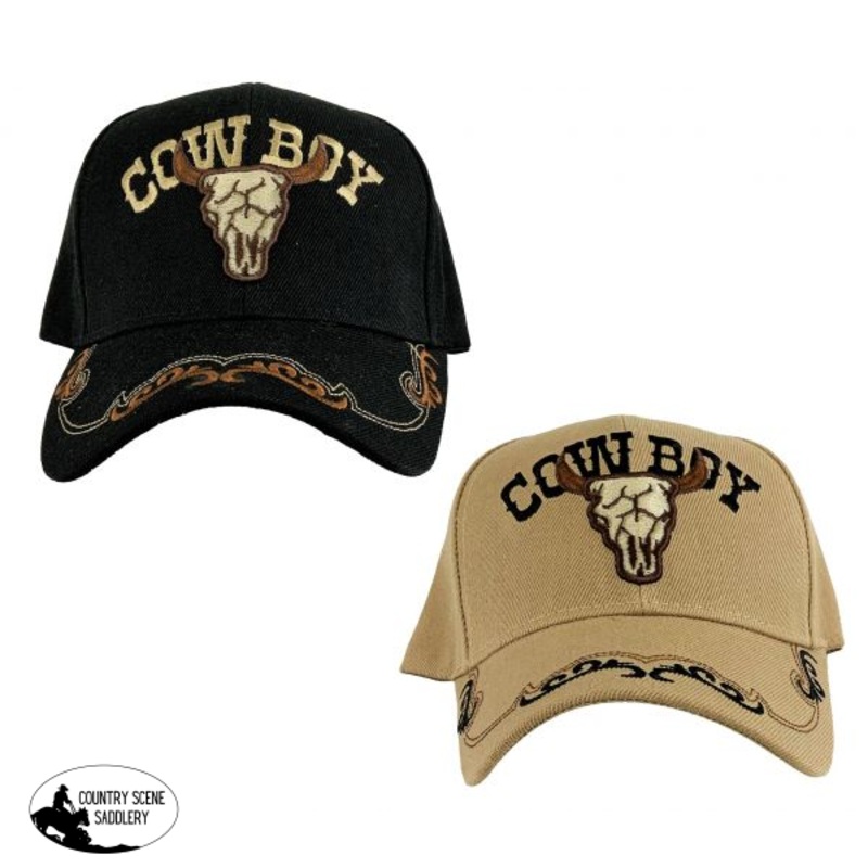 This Cap features a embroidered cowboy patch design with steer skull logo design. Features a embroidered swirl accent bill, One size fits most.