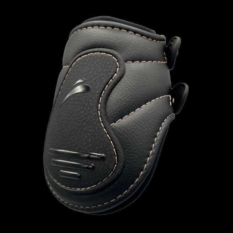 eQuick Glam Rear Boot offer superior protection for horses with three shock absorbing layers, a high quality leather outer layer, and a neoprene lycra lining. Elastic straps ensure a snug fit and hook and loop tape, fleece, and side strips offer added dura