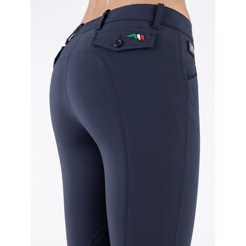 5. Back Pockets with Flap and Italian Flag Logo: Make a statement with back pockets featuring flaps and an embroidered Italian flag tricolor logo. These non-functional details add a touch of elegance to your equestrian ensemble.