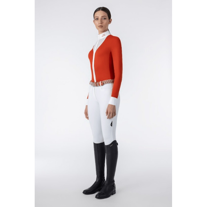 Elevate your competition attire with the Equiline Womens Competition Polo Long Sleeve where style meets performance. Immerse yourself in the stretch and breathability of this polo, ensuring optimum comfort in every ride. The microhole design on the hips an