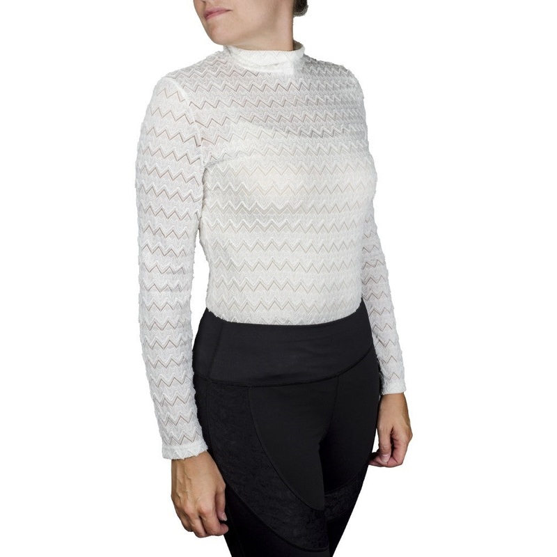Put a little Spice in your life with Equine Couture’s Spicy Girl Collection! The Spicy Girl Pumpkin Long Sleeve Shirt by EC is adorned with a textured fabric in a fun zig zag pattern. This shirt is light and airy and is sure to add style to any riding ensemble. Complete with a mock neckline, the Pumpkin will give you an edge on traditional styling.