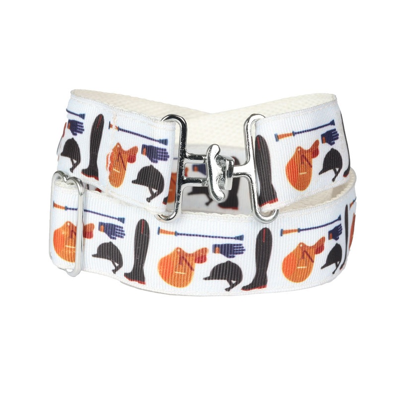 Make a stylish statement while riding with our EquiParent Youth In the Loop Riding Gear Belt! This printed ribbon belt is perfect for equestrians, with a size that adjusts from 20-40". The 1.5'' silver surcingle design buckle adds a touch of flair, while t