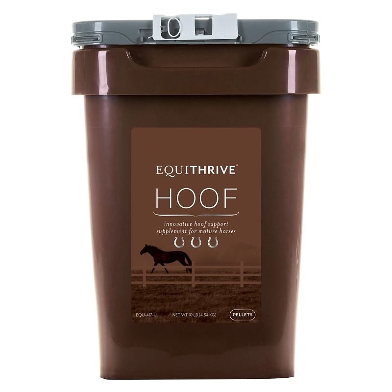 Healthy hooves are a product of good nutrition.Equithrive Hoof Pellets deliver the full-spectrum of nutrients that support and sustain healthy hoof,skinandcoat. These highly palatable pellets are easy to feed and contain key nutrients like biotin, chelated trace minerals, organic selenium, methionine and omega-3 fatty acids.