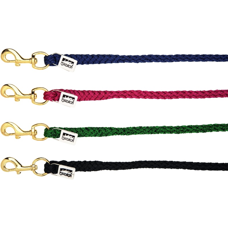 Made of plaited, tear-proof proplyene yarn with inserted endpiece. 2 meters long with a brass coated swivel hook. As a special accessory the leadrope featurers a name plate that you can personalies yourself.