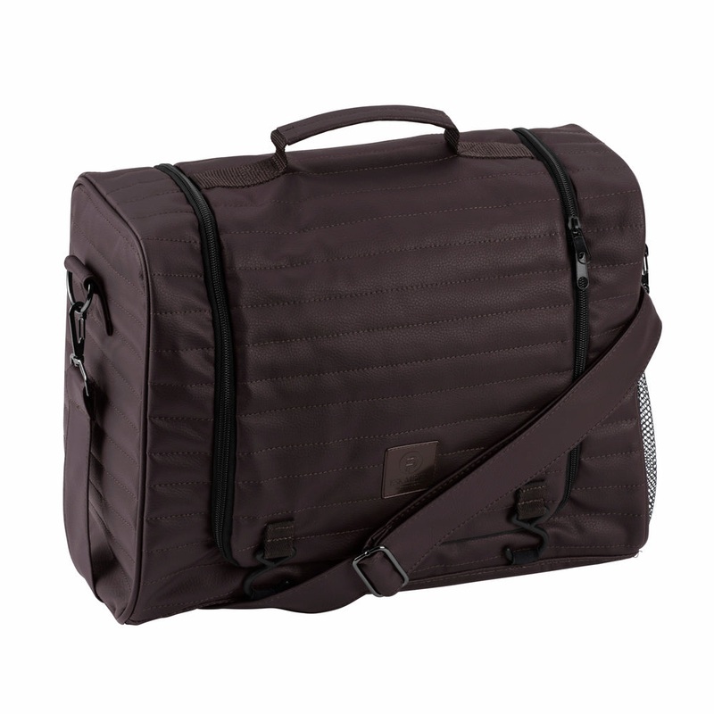 "FAUX LEATHER"practical organizer to unfold and hang upfor daily use at stable and competitionnoble quilted Faux Leather surface2 hangerslots of pockets and compartments for all a rider's belongingshandles and adjustable shoulder strapPlatinum emblemhigh-q