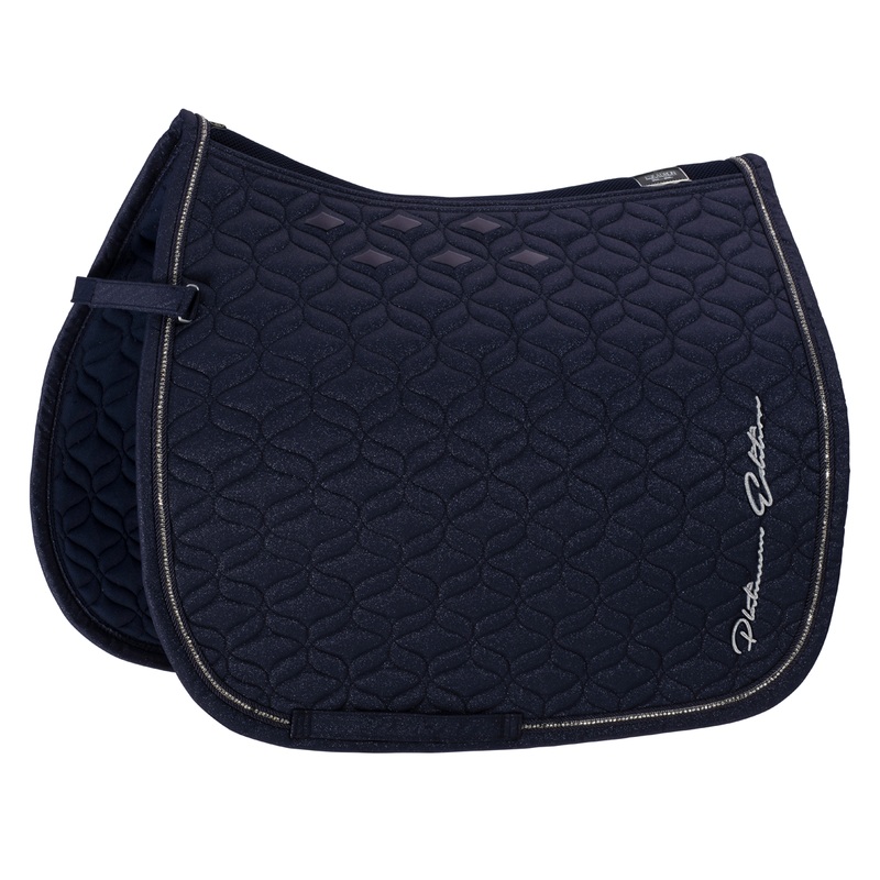 Size: FullDiscreet sparkling outer fabric and cool-dry insideCompact and striking quiltingNoble cord- crystal-cord combinationAnti slip silicone surfaces in the saddle areaMesh back channel for optimal circulationVertical Platinum lettering on both sidesGi