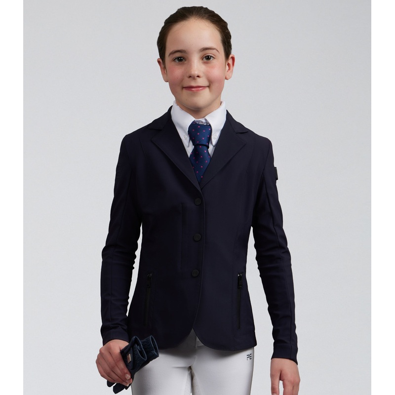 This girls competition jacket is ideal for a wide variety of equestrian disciplines. This jacket is crafted from a lightweight sleek material that feels luxuriously soft to the touch and comfortable against your skin. The construction provides multidirectional stretch for enhanced freedom of movement whilst offering improved breathability, perfect for the intensity of competition.