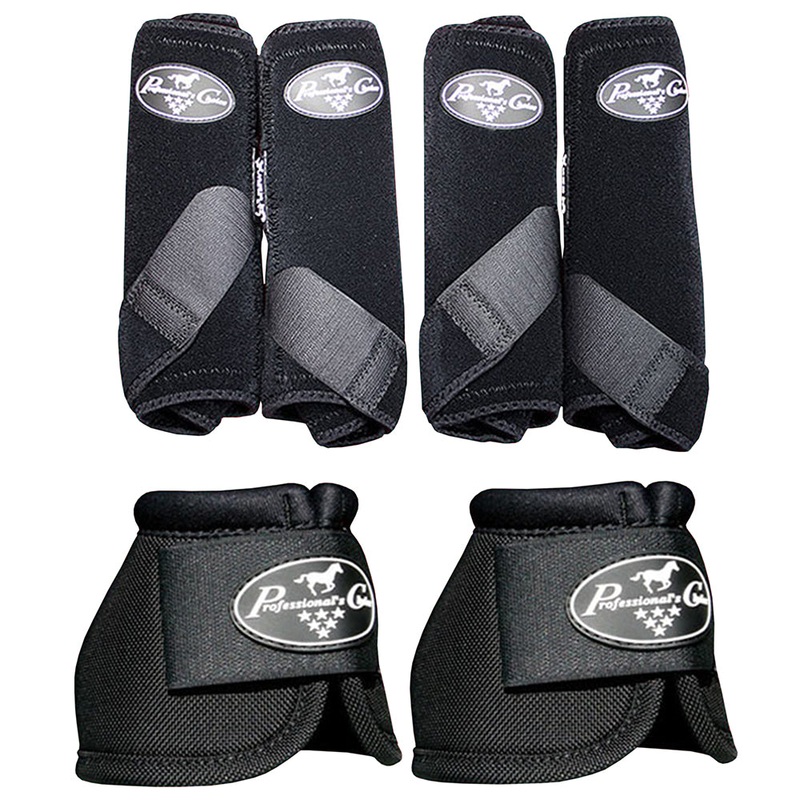 Product ID: PC-SMB34S-BB251-BLA — The SMB-3 is a hybrid between the two best selling protective boots: the original SMB II and the VenTECH SMB Elite. The exterior is constructed with Professionalss Choice signature limestone-based neoprene. Together with an UltraShock lining the SMB-3 safeguards the cannon bone tendons and soft tissue while absorbing energy from hoof impact. The slightly longer suspensory strap stretches with each stride allowing full ankle movement and helps to eliminate hyperextension of the fetlock. The SMB-3 is cut back at the lower front to allow for proper fit when used with any Professionalss Choice bell boot. Lyrca binding stretches to create a more snug fit along the top and bottom of the boot helping to keep dirt out. Booting all four legs allows the horse to comfortably maintain natural weight distribution. As an incentive to diligent horsemen a Value Pack containing a full set of boots for both the front and rear legs is available at a substantial savings. Durable Ballistic nylon outer cover and binding makes these boots especially tough and able to take the daily abuse of riding in any discipline. UltraShock lining absorbs energy from overreaching and protects the vital areas of the hoof cornet band and bulbs of the heel while the soft no-turn knob keeps the boot from spinning.Sold in pairs.