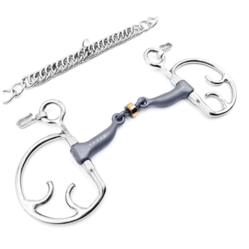 The Fager Sally Titanium Kimblehook is designed to provide the perfect solution for heavy, evasive, and sensitive horses. Its unique design relieves constant tongue pressure and creates a surprising lighter pressure when needed. The Kimblehook offers a mor