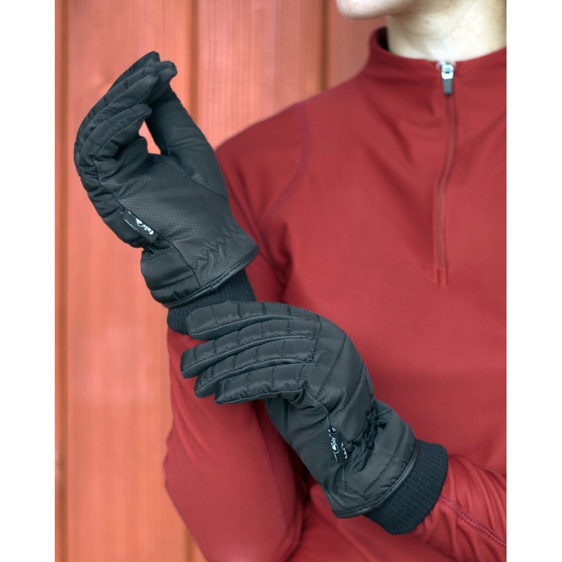 The outer palm is made of a quilted, rainproof fabric