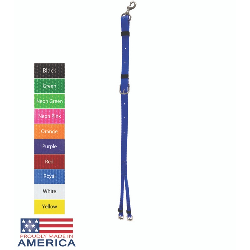 Made of BioThane material. Attaches to front overcheck and water hook on harness.Made in America