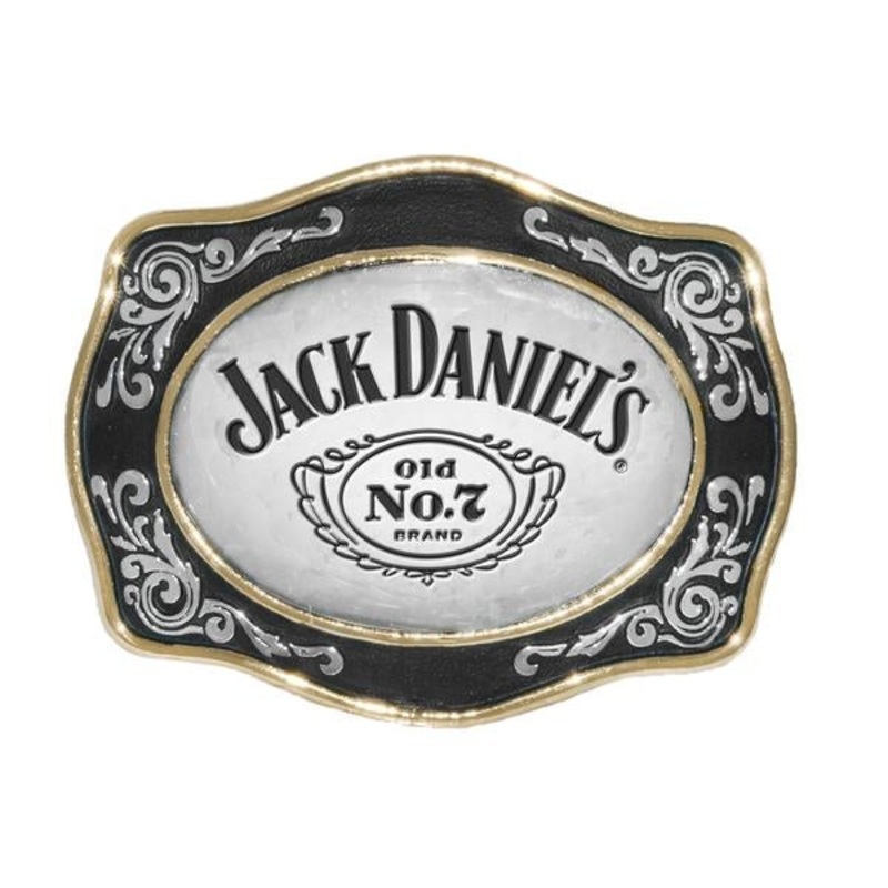 Jack Daniel's Smooth Gold Edge and silver accent inner filigree Belt Buckle with Cartouche LogoFeatures: Officially Licensed Jack Daniels ProductComes in a Leatherette Gift BoxColor:SilverSize:4 x 3