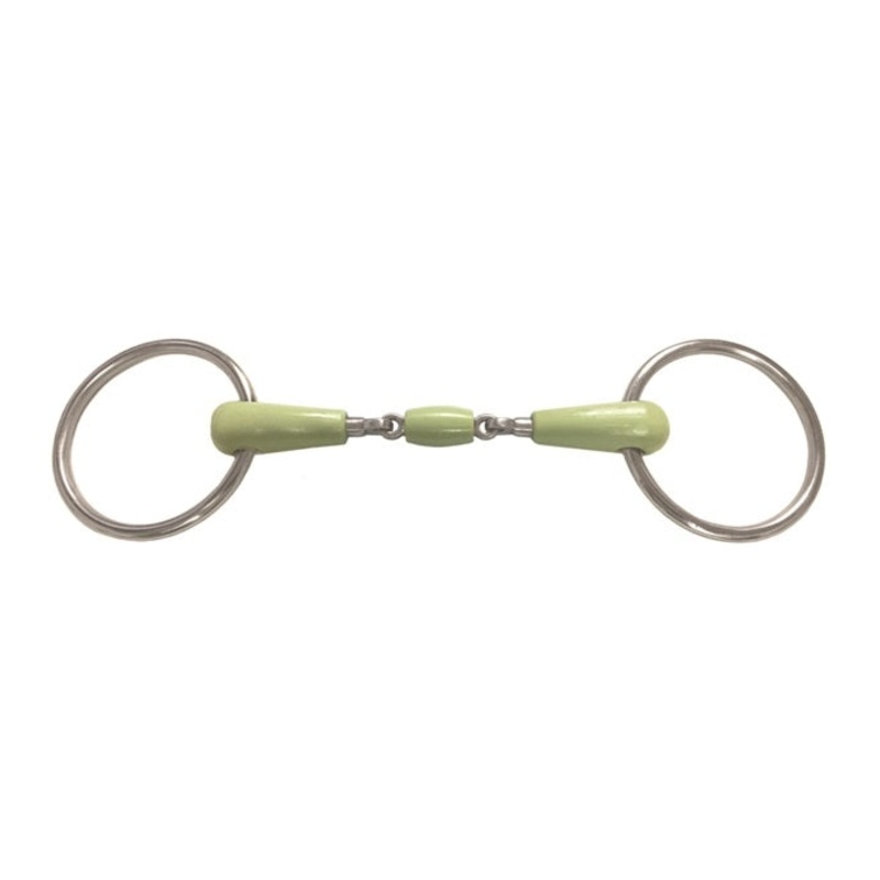 Apple Mouth Double Jointed Ring Snaffle Bit, with stainless steel rings, and a 5″ apple flavored mouth piece.