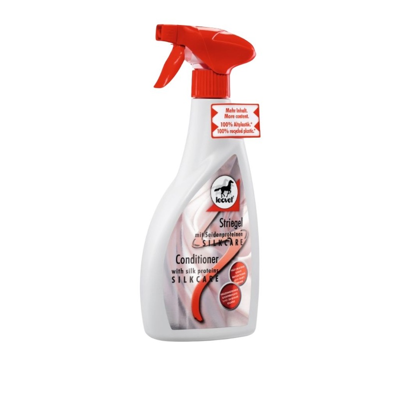 Silk Care creates light reflections really let coat, mane and tail shine. Leovet Silk care Conditioner Spray makes the hair dust- and dirt-repelling. Urine, manure spots and other encrustations can be easily brushed off even after days. Contains Silk amino acids.