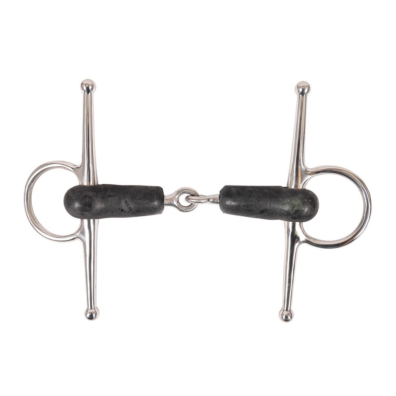 Crafted in soft rubber for optimal comfort, the Metalab Full Cheek Rubber Snaffle Bit helps to prevent the bit from being pulled sideways. The lightweight snaffle mouthpiece helps to offer gentle, mild pressure on the bars of the mouth. Complete with a stainless steel core and cheekpieces for optimal durability.