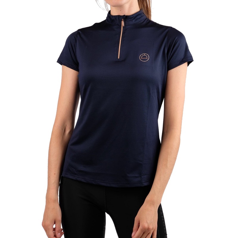 Everly Logo Polo in a new updated version with rosegold details. In the front is a rosegold neck zipper and on the left side of the chest is a Montar logo in rosegold crystals. The highly functional Mon-tech fabric is breathable and sweat-absorbent, which