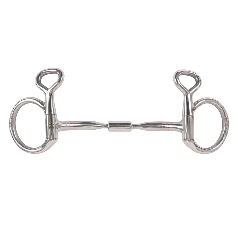 The Myler Wide Barrel Baucher Bit W/ Wide Barrel is designed with a wide center barrel mouthpiece to help disperse tongue pressure across a greater area. This bit features the MB 02 mouthpiece. The MB 02 is the Myler alternative to the traditional French link or lozenge mouthpiece commonly used in snaffle bits. The MB 02 rotates onto the tongue applying tongue pressure, but because the mouthpiece is curved, it wraps around the bars and lips instead of pinching. The barrel in the center applies approximately the same pressure on the tongue as a traditional three-piece mouthpiece however, the barrel distributes the pressure more kindly and creates Independent Side Movement. The Baucher bit helps to offer mild poll pressure and provides increased leverage beyond that of a traditional snaffle bit. Crafted in durable stainless steel and featuring a sweet iron mouthpiece to help encourage oxidization and salivation.