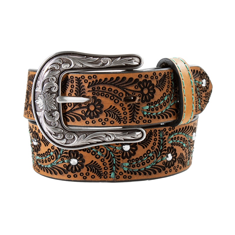 Nocona Girls Turquoise Stitch Paisley Brown Western Belt. This stylish girls Nocona belt by M&F Western Products is a must have for your cowgirls closet.