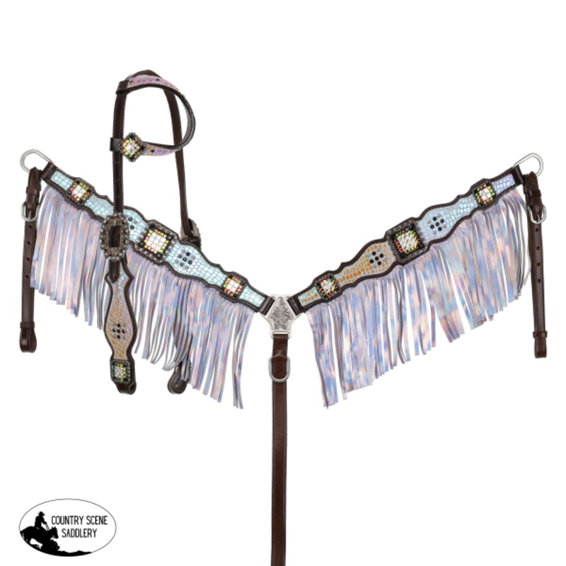 New! Showman Limited Edition Mystic Gator One Ear Headstall and Breastcollar Set
