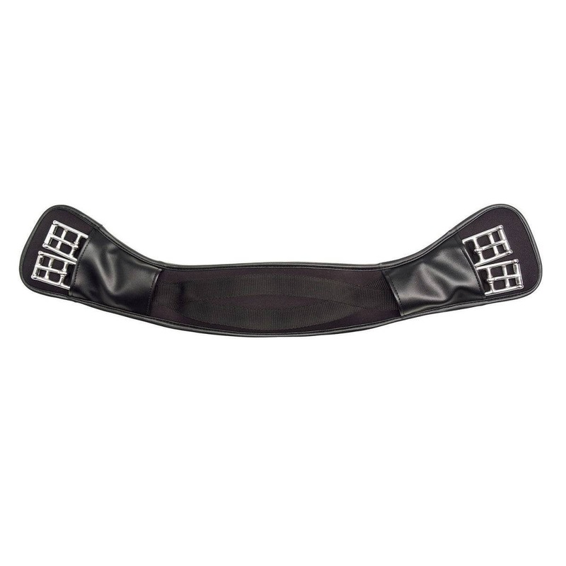 Contoured shape for extra elbow room. Gel lined for comfort and elastic at both ends with Stainless buckles.