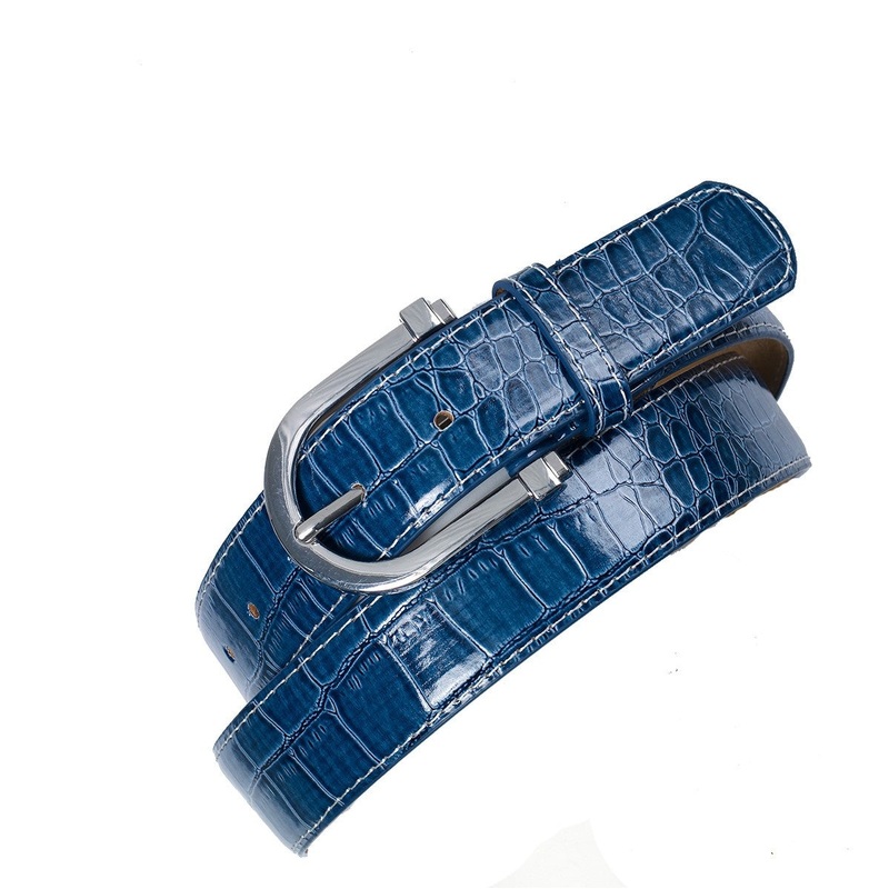 Stamped crocodile printVibrant glossy colors1.25 strapStainless steel buckle