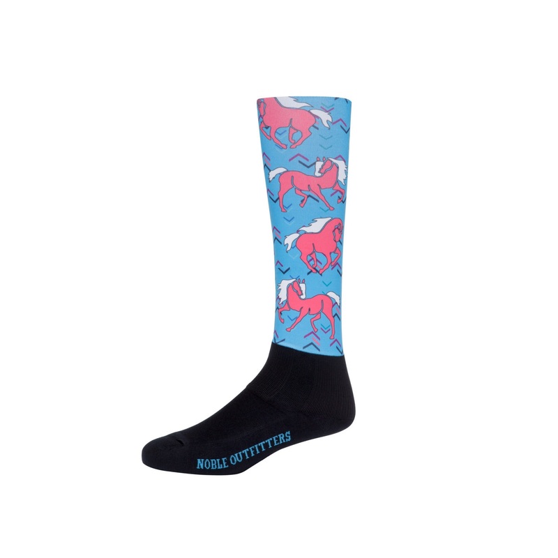 The Noble Equestrian Girls Over the Calf Peddies not only give you cushion and comfort, but also come in lots of fun colors and prints to show off your style! With extra cushion on the bottom of the foot and Noble Equestrian special ankle shield padded protection, Over the Calf Peddies are perfect for around the barn or a long show day, and will even make the dreaded boot break-in period a thing of the past. The ultra thin calf is made to fit perfectly under jeans, or over breeches or jods. Opti-Dry technology wicks away moisture keeping your feet dry and comfortable.