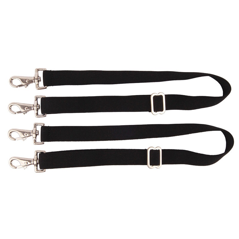 Oxbow Tack Double Snap Blanket Leg Straps- PairDurable nylon or strong fabricBlackDouble snap design for easy attachment and securityAdjustable to accommodate most blankets and horse sizesPair (two straps included)Offers a reliable and durable solution for